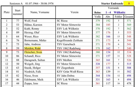 Ergebnisse Vorrunde Kreiseinzelmeisterschaft der Herren