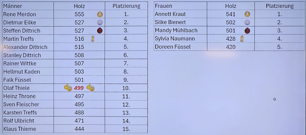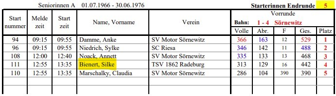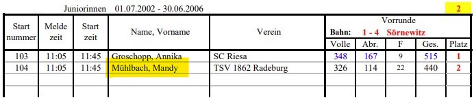 Ergebnisse Vorrunde Kreiseinzelmeisterschaft der Frauen